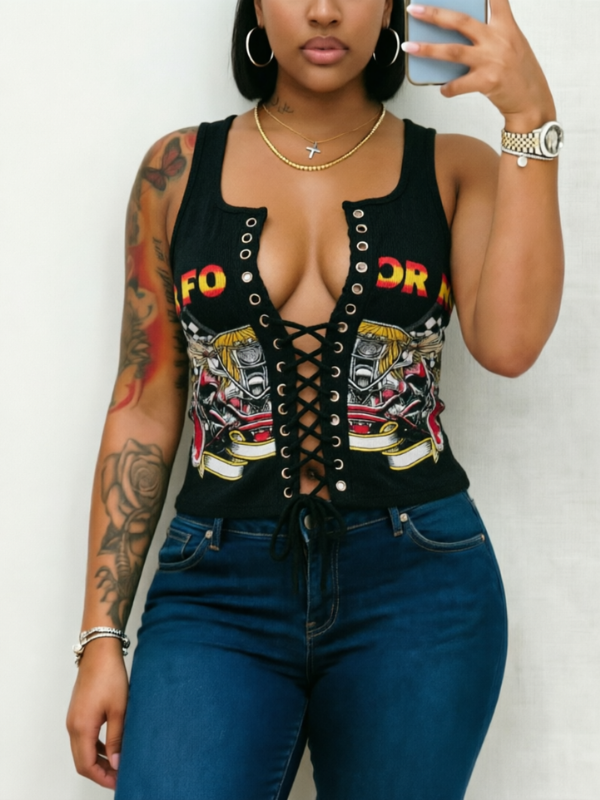 Printed Lace-Up Tank Top