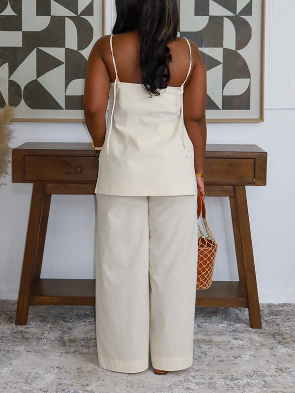 Solid Tank Top & Flared Pants Set