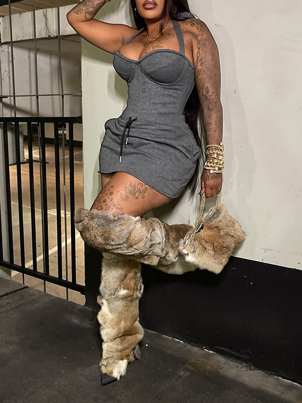 Cowl-Neck Halter Dress