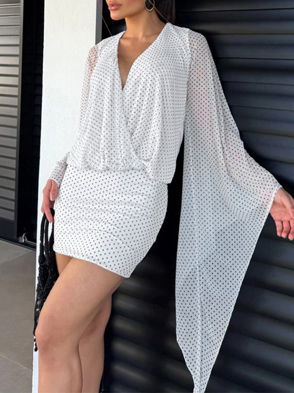 Dot V-Neck Open-Back Dress
