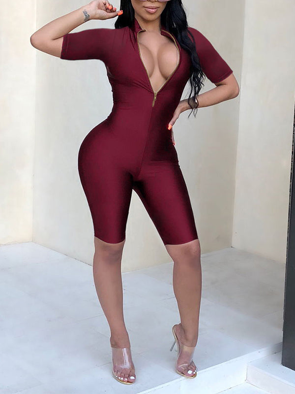 Solid Zip-Front Romper