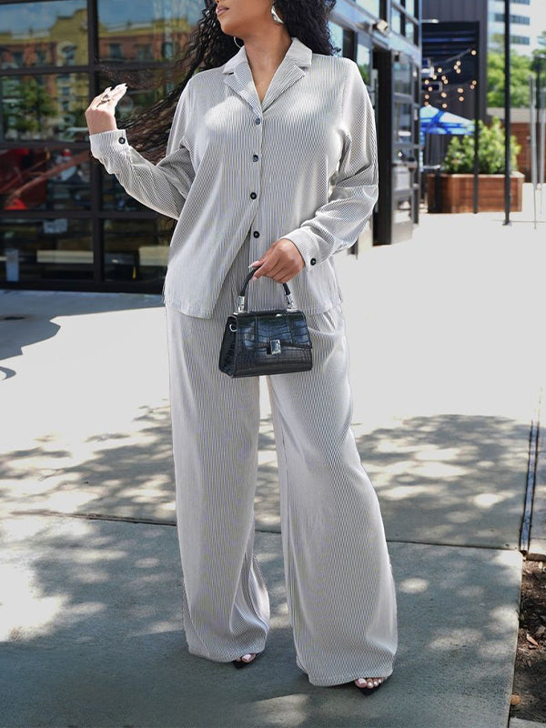 Solid Top & Button Pants Set-Clearance
