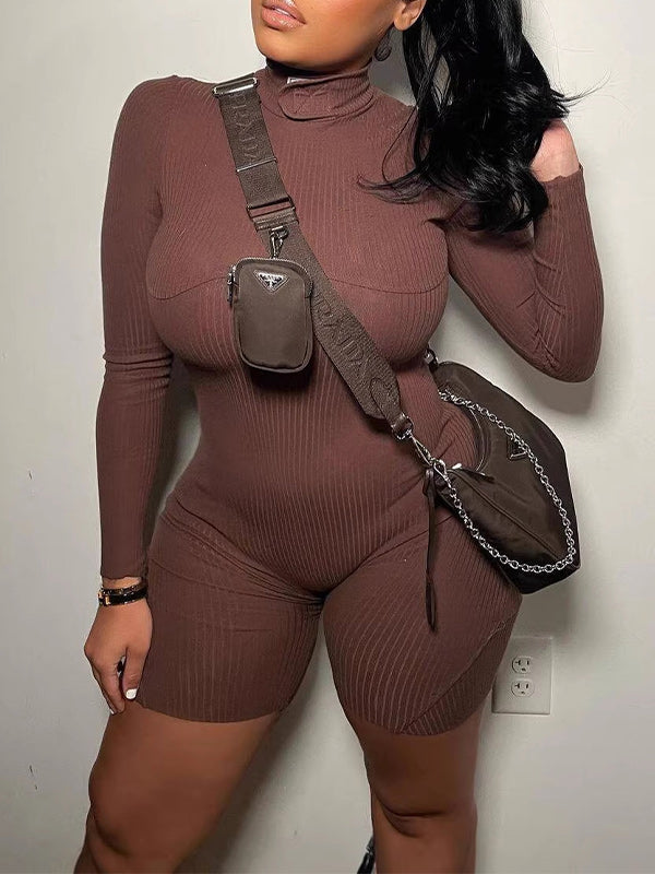 Mock-Neck Ribbed Romper