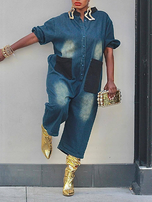 Motionkiller Denim Button-Front Cargo Jumpsuit