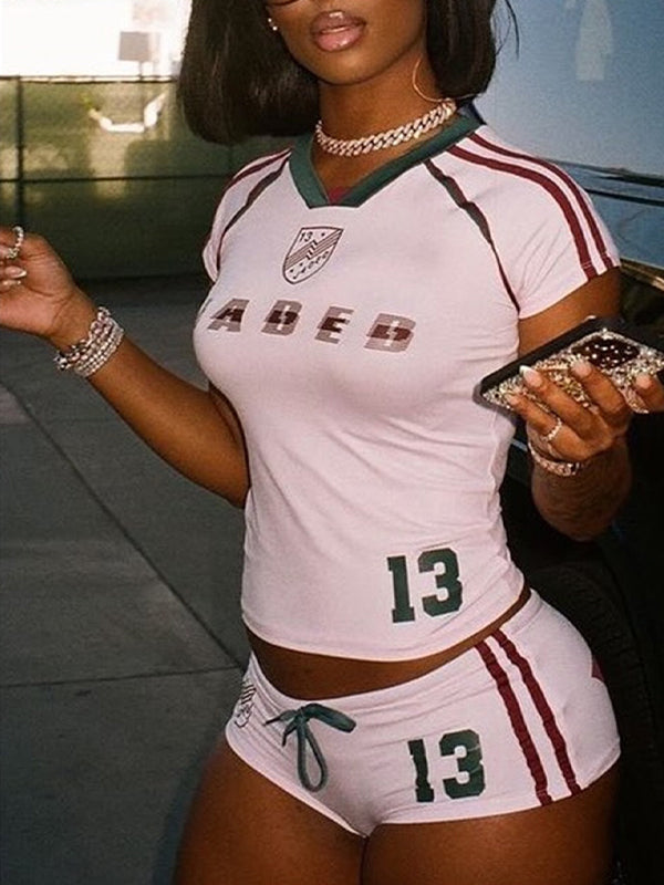 Printed V-Neck Tee & Shorts Set